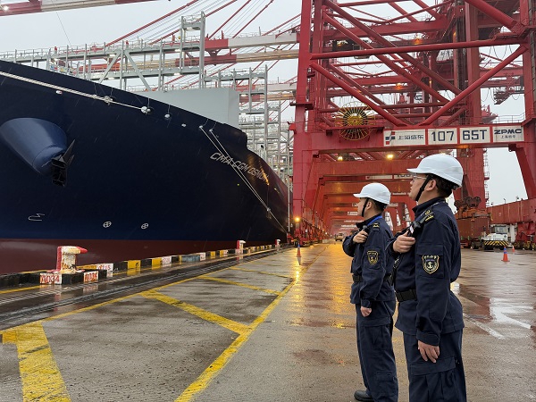 “这次加注量大,对安全要求极高。”洋山港海事局工作人员告诉新民晚报记者。为确保作业安全,洋山港海事局聚焦风险防控,构建全方位监管与服务保障体系。主动靠前指导加注作业单位开展绿色甲醇燃料加注作业安全风险识别、作业方案研究及应急预案编制等工作;依托“VTS精灵”人工智能系统与CCTV视频监控,对作业船舶实施全程动态跟踪、智能风险预判;调派海巡船艇开展现场警戒,同步部署执法力量强化作业现场监管,督促船方加强对系泊、管路连接等关键点位的自查,形成“远程监控+水域巡航+现场巡查”的立体化监管网络,全力保障作业顺利进行。